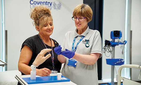 Nursing students can practise taking blood samples with simulation device invented by a nurse