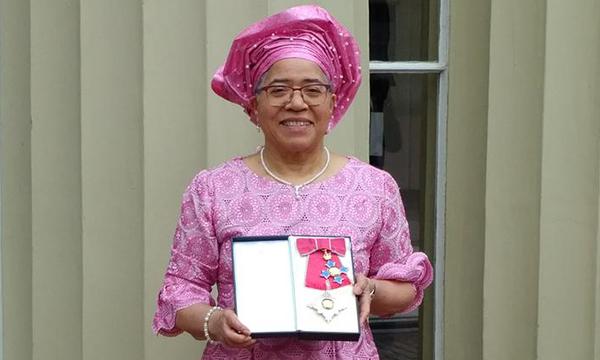 Dame Elizabeth Anionwu honoured by the Queen at Buckingham Palace